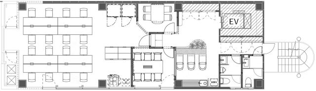 ★室内には16名用の椅子・デスク、2台のテレカンブース設置