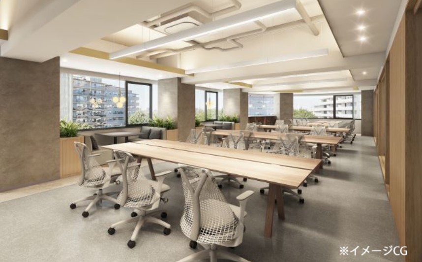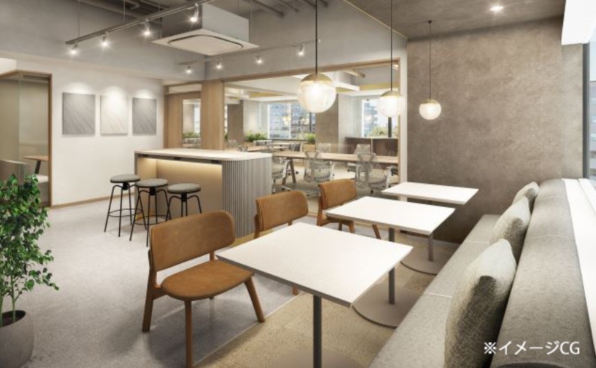 3 / 6 清潔感とデザイン性の高いオフィス_人形町の什器付きフルセットアップオフィス_イメージパース