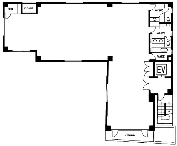 ★L字形状により基準階はバルコニー側に会議室やリフレッシュスペースを設置