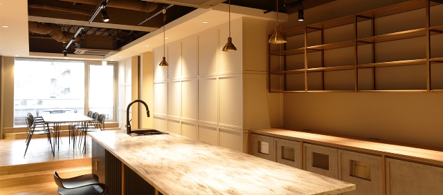 【中央区】築地_バーカウンター付きリフレッシュ空間で、発想を刺激するセットアップオフィス