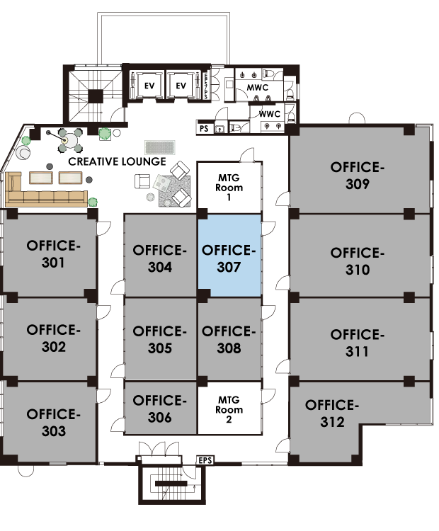 →ラウンジ・会議室・ルーフトップテラス・男女別共用化粧・他