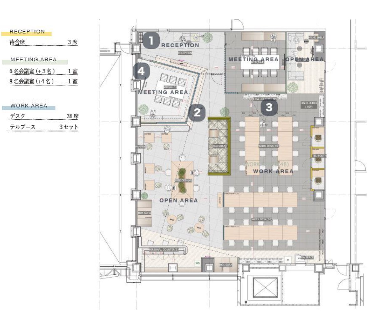 ★ セットアップ内容を選べるプラン(会議室×2、ファミレスブース、テレカンブース、ラウンジ、デスク36席)