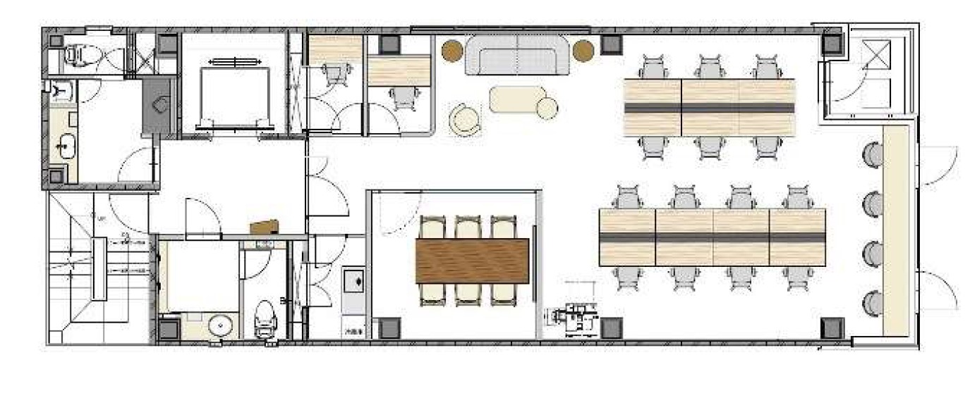 ★ 男女別トイレは執務室外にありプライバシー安心