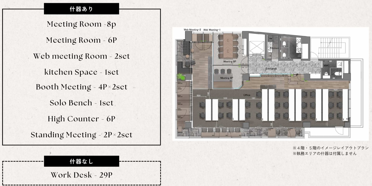 4 / 6 29席程度の配置を想定