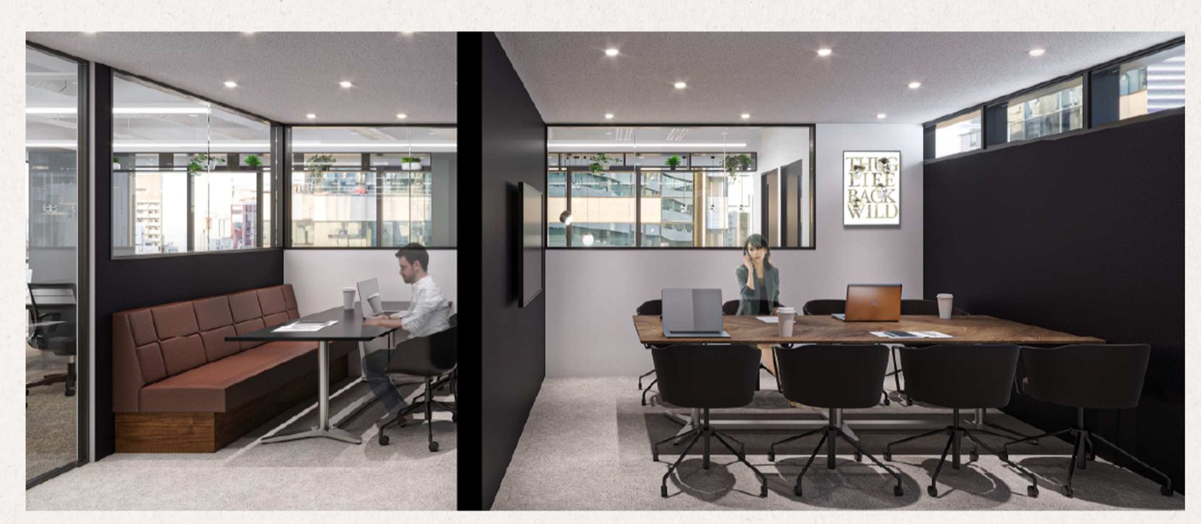 ★ 受付・会議室2室・テレカンブース・ラウンジ・ファミレスブース完備